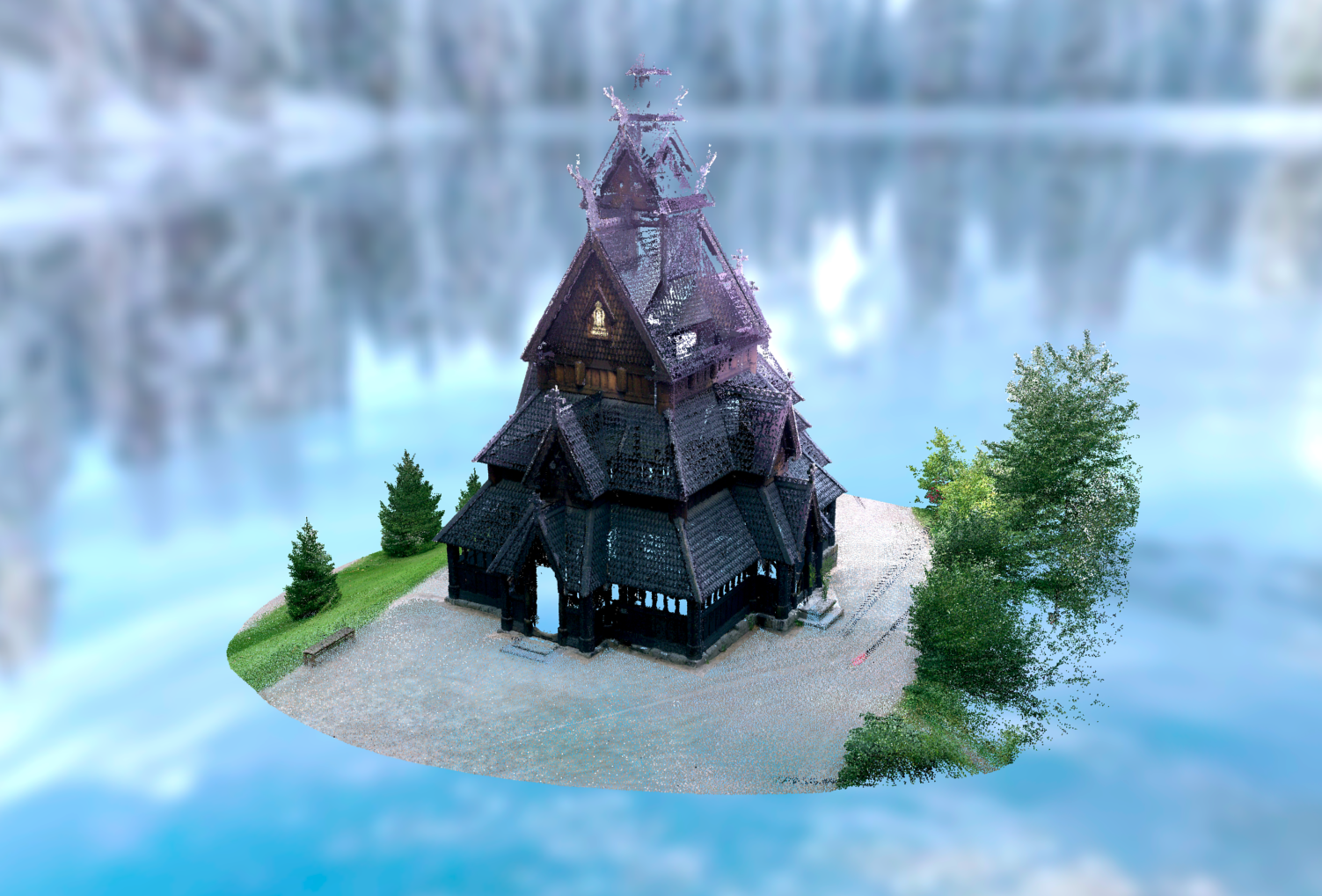 This beautiful Norwegian stave church was built by the vikings in 1157 in the village of Gol without a single nail. It has been relocated to the open-air museum in Oslo, where we scanned it on a sunny afternoon.