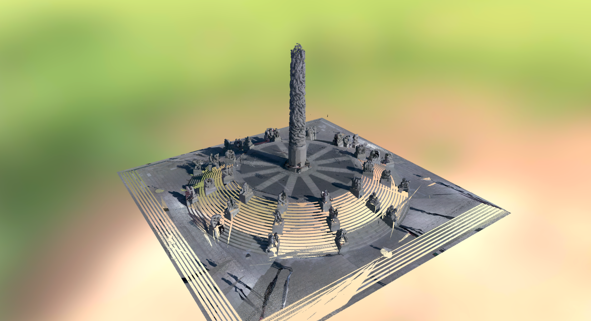 On the highest point of the Vigeland Sculpture Park, rise circular stairs towards the Monolith. Counting with 121 figures, it is 17,3 metres high and carved from one single granite block.