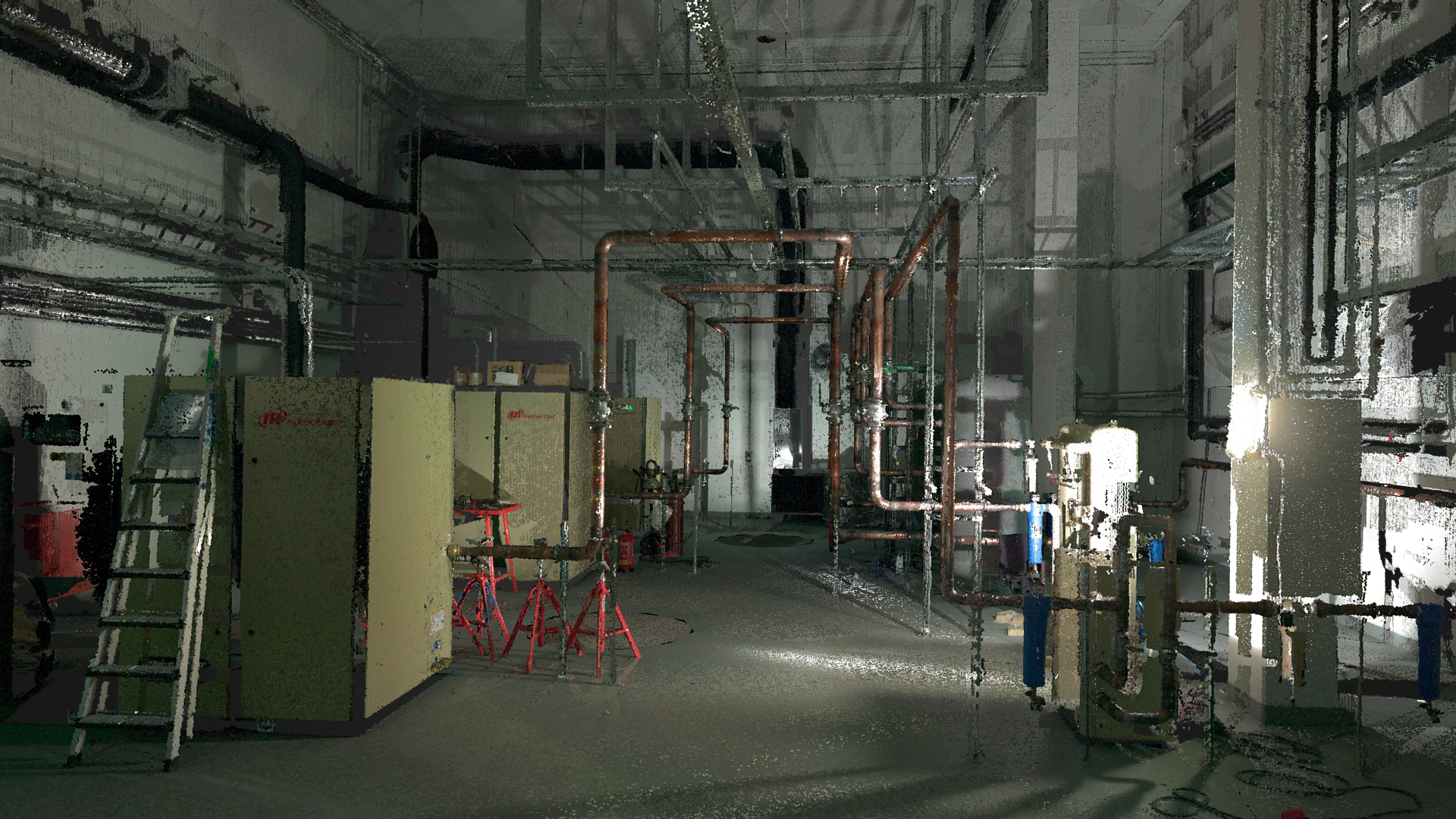 Despite being a downsampled scan, this gives you an impression of the capabilities of the Leica BLK360 scanner to capture a complex technical room at the Veterinary Campus in Ås, Norway.